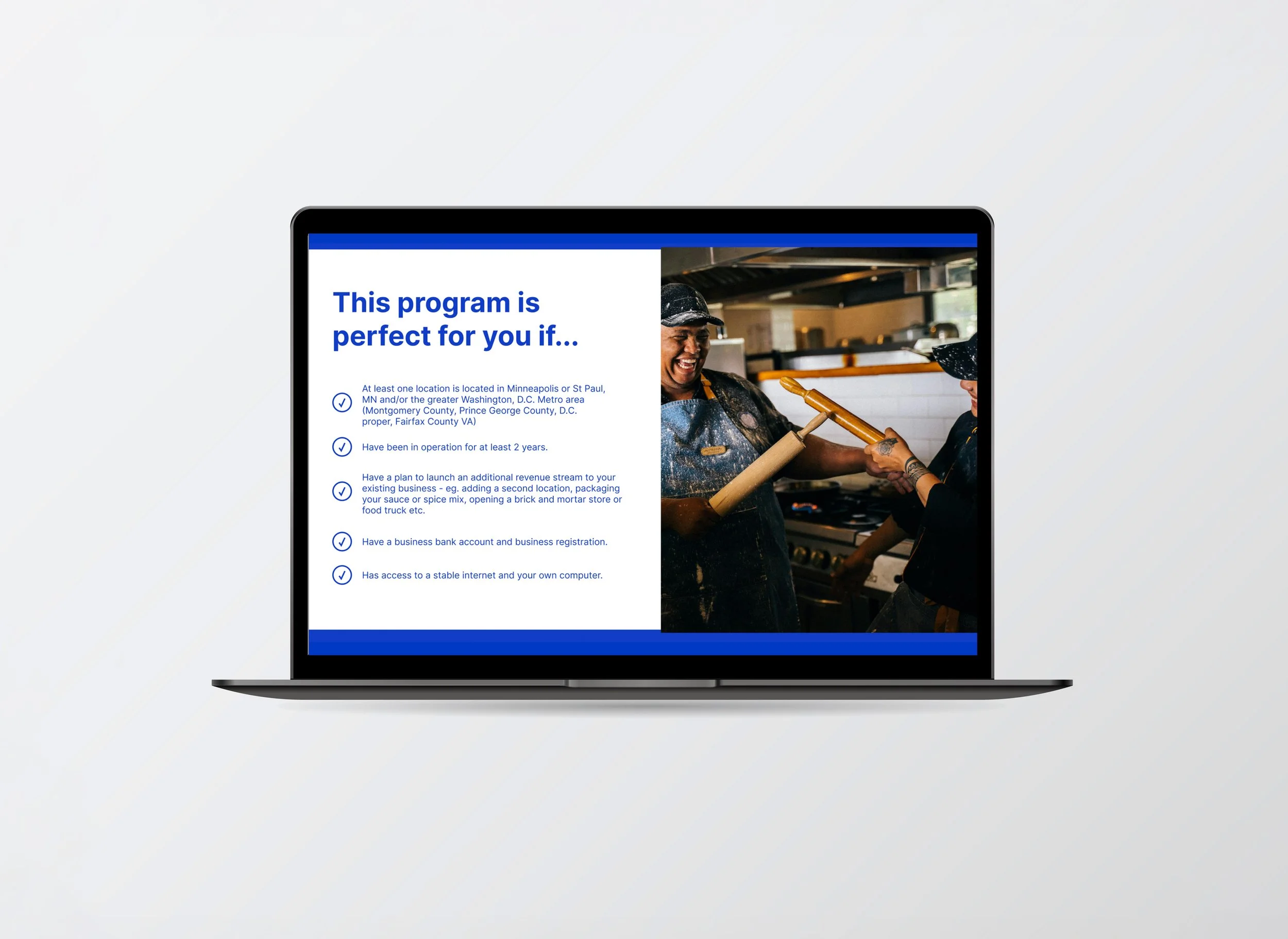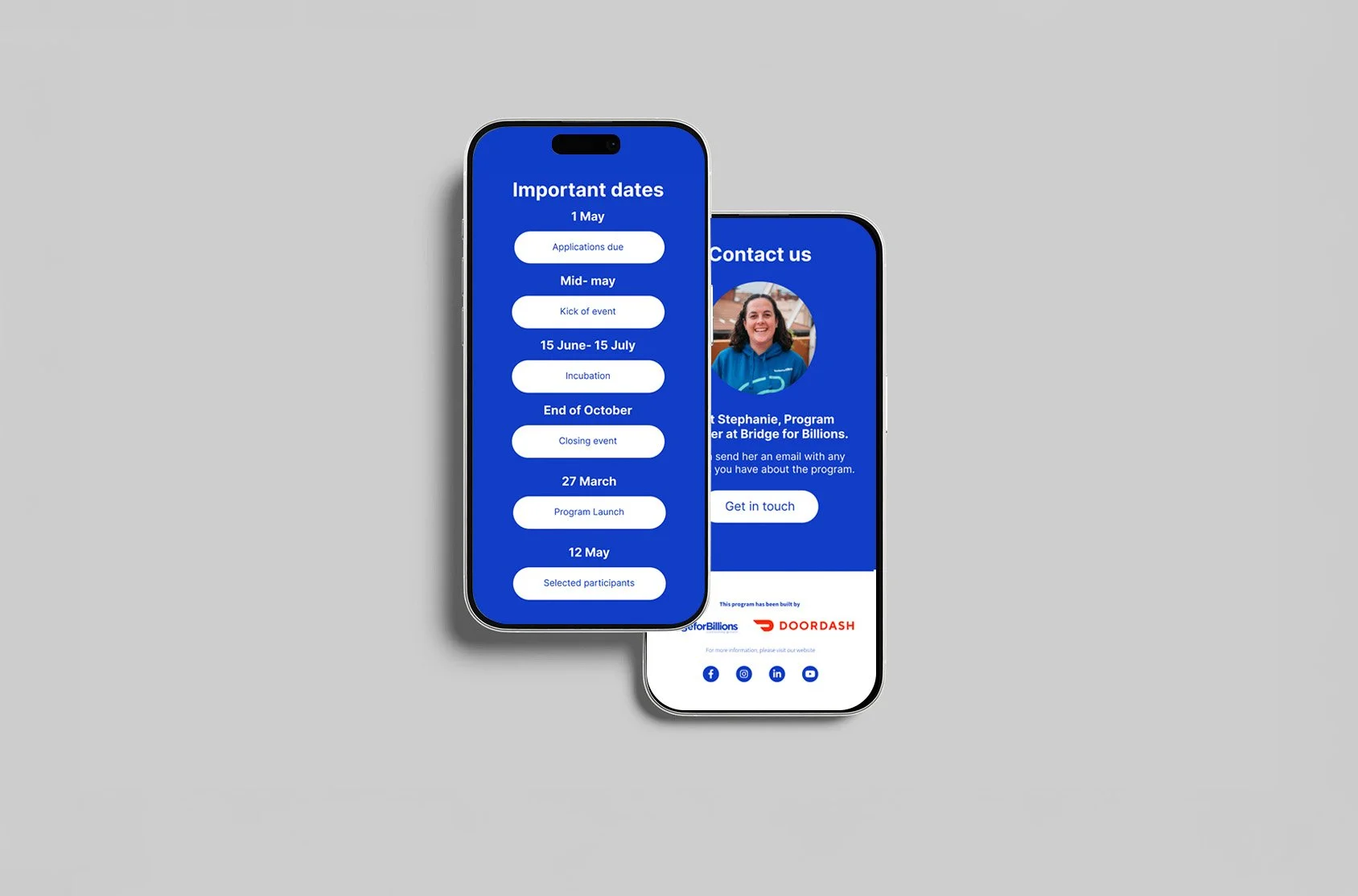 Branding and design of an entrepreneurship program developed in partnership with Bridge for Billions, a startup incubator. The initiative was created to support emerging chefs through mentorship, training, and live events, helping them strengthen their businesses and showcase their culinary talent. My work focused on building a visual identity and communication strategy that captured the essence of growth, creativity, and community.